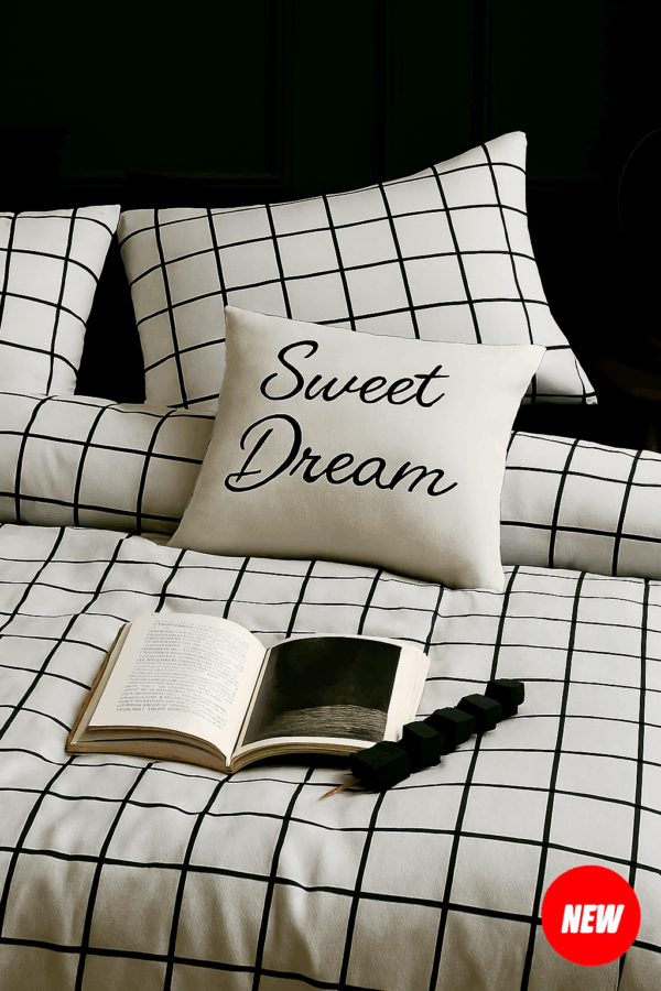 Tek Kişilik Antrasit Beyaz Kareli Desenli Nevresim Takımı | PAMUKLU Her Yatağa Şıklık Katar!Tek Kişilik Nevresim Takımları