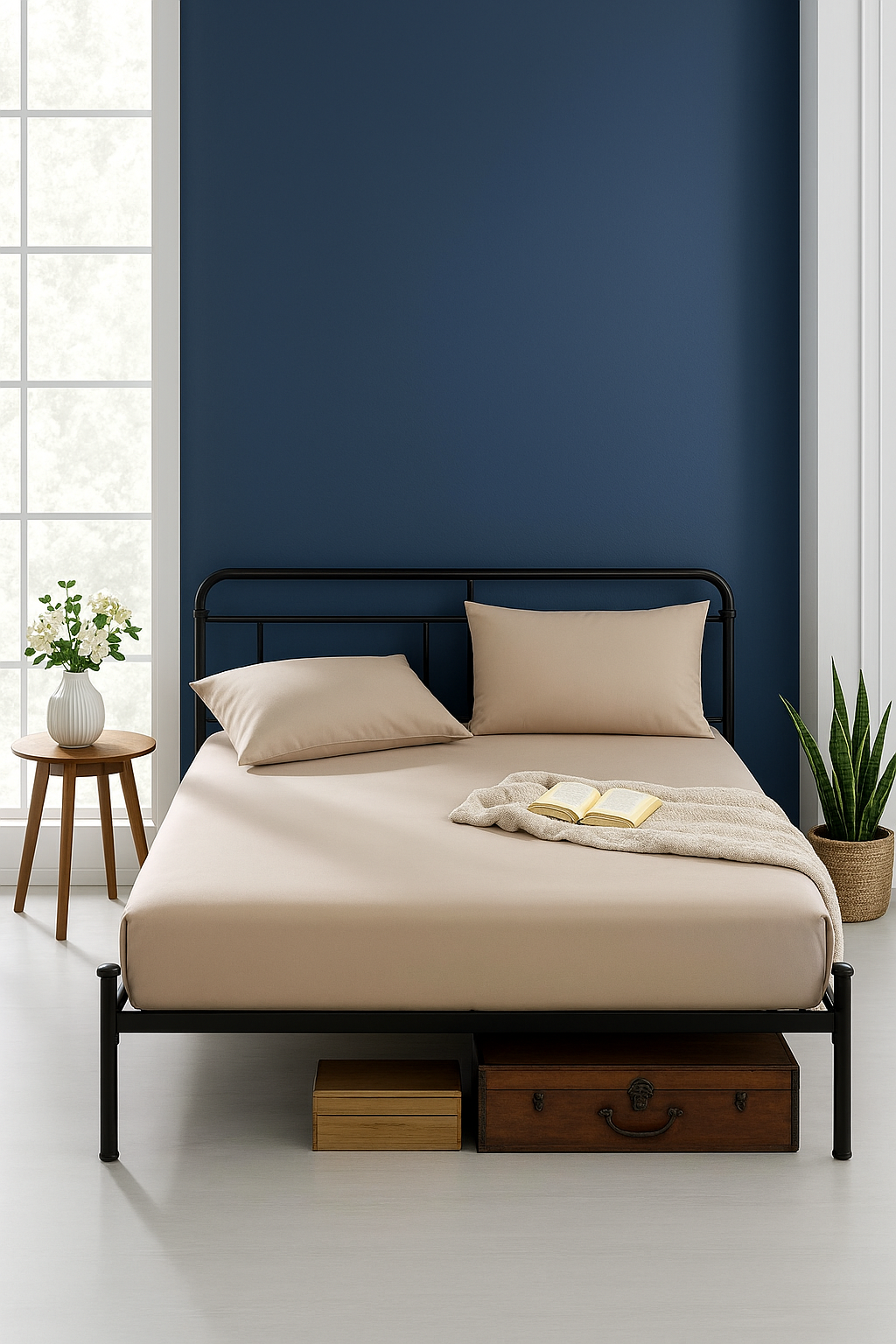 Bej Pamuklu Her Yatağa Uyumlu Lastikli Çarşaf Takımı | Ev, Otel, Yurt Kullanımına Uygun Terletmez, YakmazÇift Kişilik Çarşaf Takımları