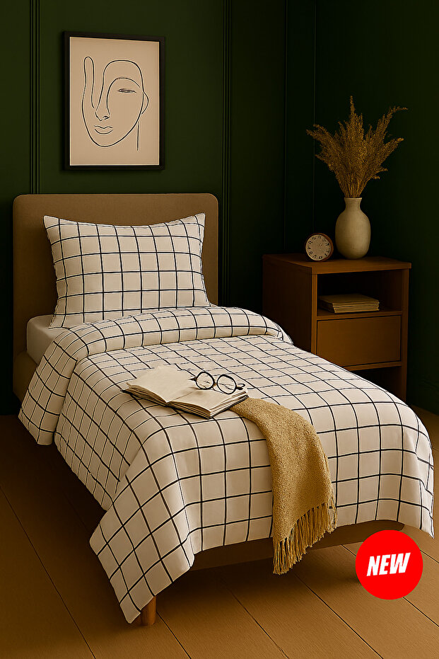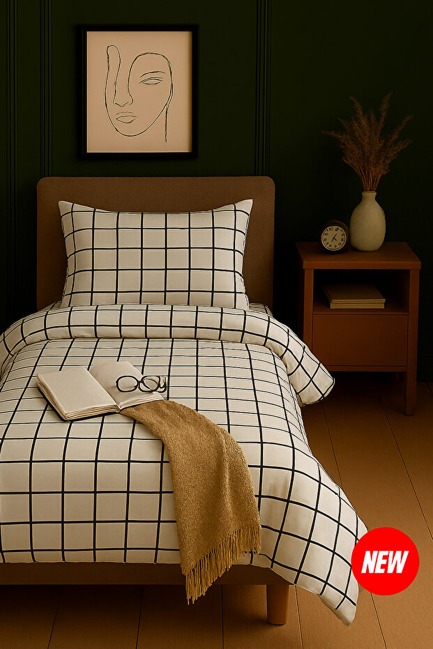 Tek Kişilik Kareli Desenli Nevresim Takımı | PAMUKLU Her Yatağa Şıklık Katar!